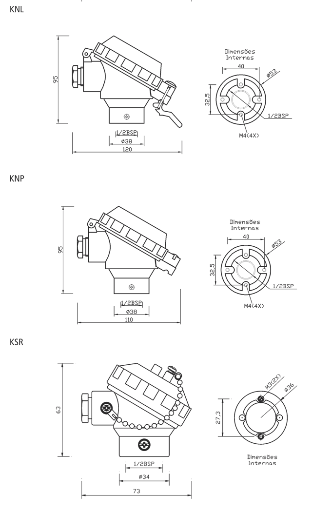 Tipo: KNL-A, KNL-N, KNP-A, KNP-N e KSR