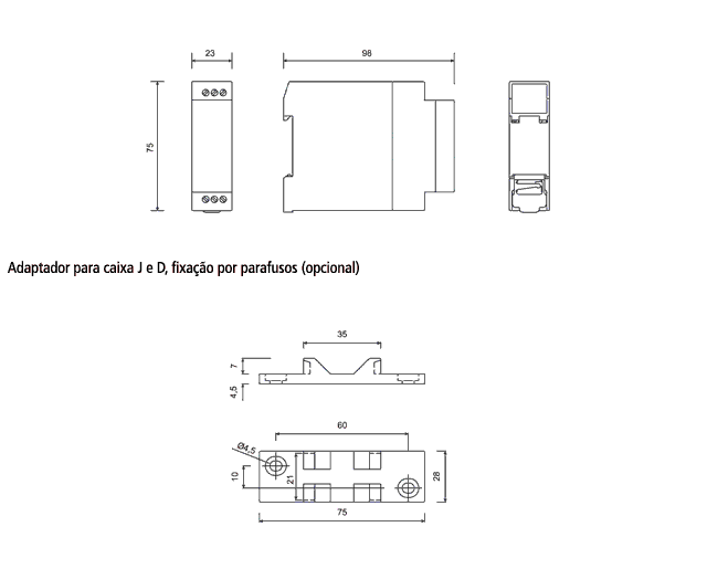 Trilho DIN 35 mm ou parafuso com acessório opcional |