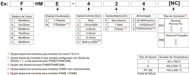 O controlador de temperatura é inicialmente entregue com os valores padrão de fábrica “pré-ajustados”. No entanto, para garantir uma aplicação satisfatória, é essencial realizar uma configuração em bancada antes da instalação. Recomendamos, cuidadosamente, verificar o código e/ou a descrição completa do dispositivo, incluindo opções de saídas, a fim de facilitar a instalação e configuração adequadas.