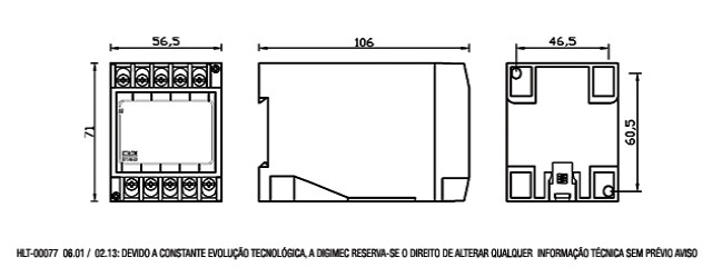 O relé de corrente MPX-57 foi desenvolvido pela Digimec para proteção de equipamentos elétricos monofásicos que não podem operar quando a corrente que circula pelo circuito de carga estiver acima ou abaixo de seu valor nominal. Montado em caixa plástica, apresenta alta resistência a choques, vibrações, além de possuir um sistema de fácil fixação em trilho DIN ou por parafusos.